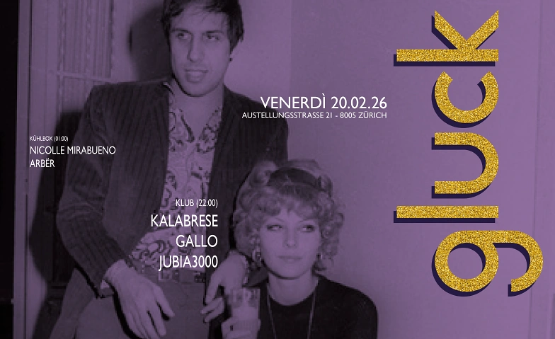 Ein neues Zuhause für eine Nacht, in der sich Sounds begegnen dürfen. gluck steht für Musik ohne Scheuklappen, für das Wechseln der Stimmungen und für Glücksmomente jenseits des Gewöhnlichen, irgendwo zwischen Retro-Italo, Disco-Ekstase und nächtlicher Rohheit.