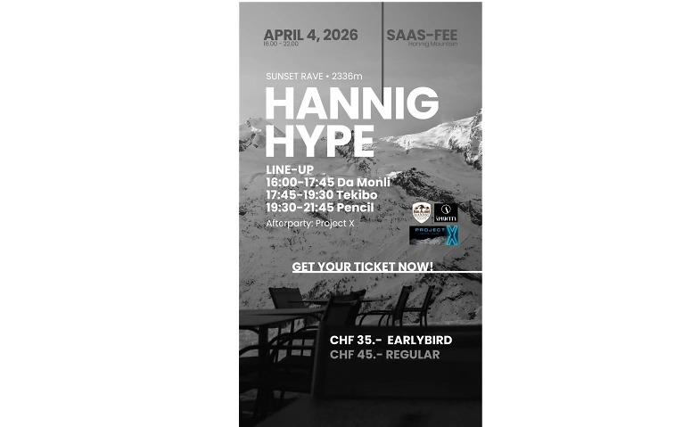 Zum ersten Mal überhaupt wird Saas-Fee Gastgeber eines Sunset Raves auf 2336 Metern über Meer — dort, wo kalte Bergluft auf druckvollen Bass und kompromisslose 4/4-Energie trifft. Das ist nicht einfach nur eine Party. Das ist ein Statement.
