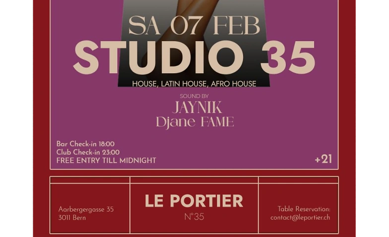STUDIO 35 (Latin House & Afro House) Le Portier Club, Aarbergergasse 35, 3011 Bern Tickets