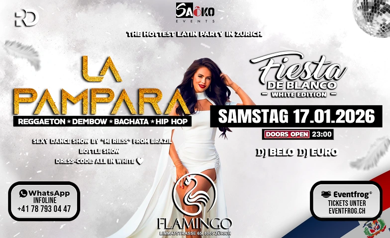 #DE - Die heiΓeste Latin Party der Stadt erwartet dich in exklusivem WeiΓ! Tanze zu den besten Latin Hits, genieΓe exotische Vibes und lasse dich von der magischen βWhite Editionβ verzaubern. Feiere eine unvergessliche Nacht voller Eleganz und Glamour! π₯