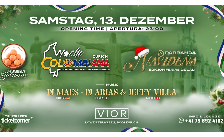 La Navidad se enciende al ritmo de Colombia este 13 de diciembre en Zúrich. Salsa que alegra el alma, vallenato para cantar sin miedo, reggaetón que prende la rumba y buñuelos calienticos que saben a tradición.