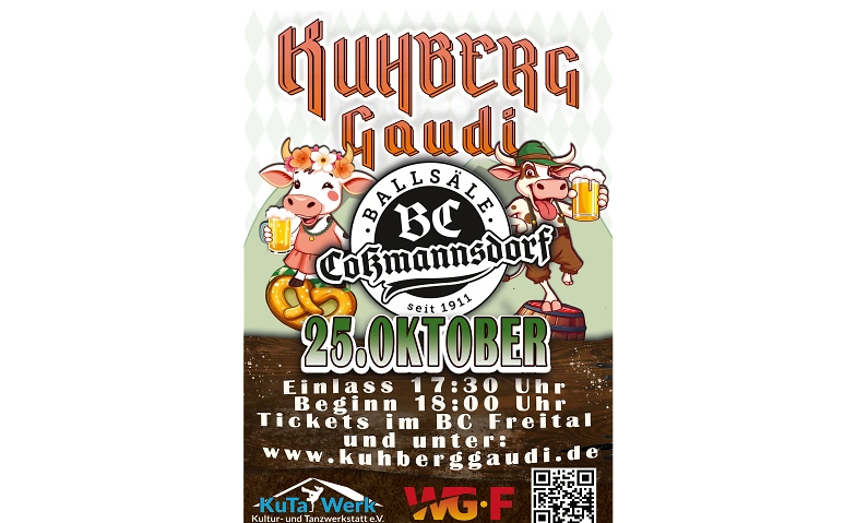 Das Team vom BC und des Kuta Werks verwandeln am 25. Oktober die Säle des BC Coßmannsdorf in eine zünftig geschmückte Oktoberfest Location und damit in ein wahres Zentrum bayerischer Lebensfreude. Mit „Kuhberggaudi im BC“ erleben Sie ein ganz besonderes Oktoberfest-Event. Unter dem Motto „Feiern, was das Herz begehrt!“ erwartet unsere Gäste ein Abend voller Musik, Spaß und traditioneller Wiesn-Atmosphäre.
