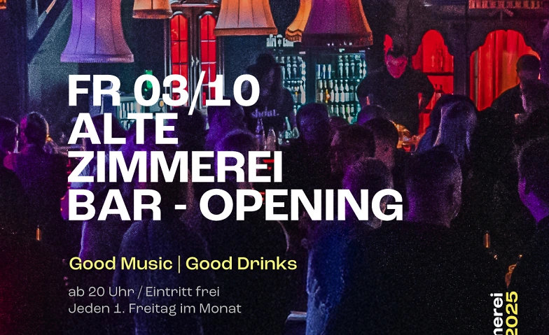 Die Alte Zimmerei Bar startet in die neue Saison! Ab sofort heißt es wieder an jedem 1. Freitag im Monat: kühle Drinks und beste Stimmung! 🍸