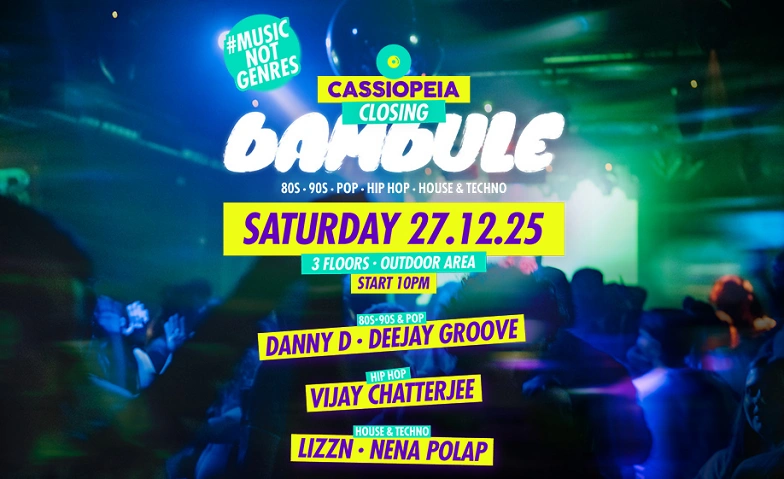 Unsere letzte Bambule Party dieses Jahr! Für alle, die dem Silvester-Wahnsinn entfliehen wollen oder den Partymarathon schon frühzeitig starten möchten: Wir laden euch ein, das Tanzbein im Cassiopeia zu schwingen. Wie immer mit einem bunten Potpourri aus 80s, 90s, Pop, Hip Hop, House & Techno auf drei Floors.