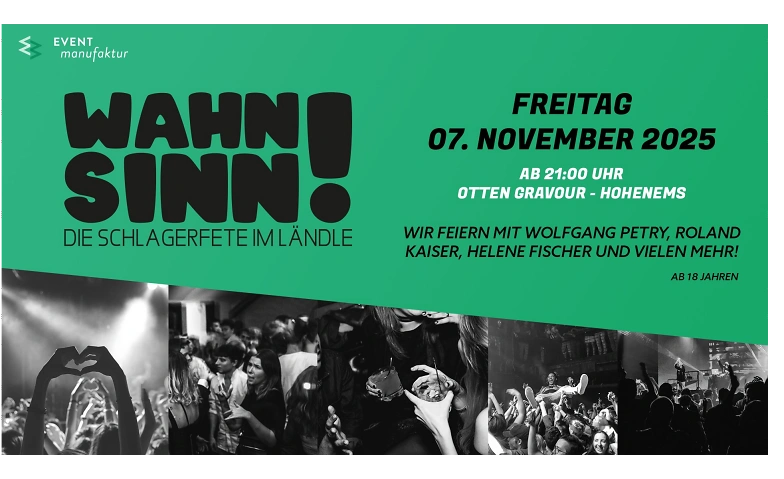 Wahnsinn! - Die Schlagerfete im Ländle Otten Gravour, Schwefelbadstraße 2, 6845 Hohenems Tickets