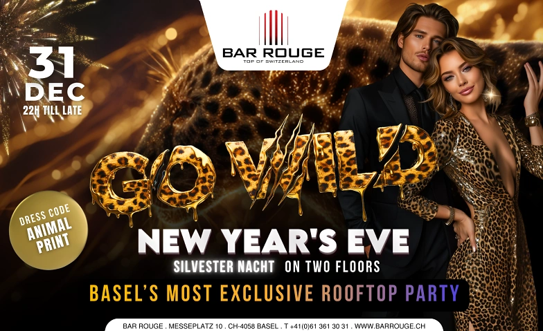 Du und dein neues Ich starten mit uns in ein fabelhaftes 2026 – wild, elegant und voller Glamour. Folge dem Dress Code GO WILD und wähle deinen Look, der alle Blicke auf sich zieht: Ob im auffälligen Leopard- oder Zebra-Style oder als edler schwarzer Panther – zeige deine wilde Seite mit Klasse. Trage deinen Smoking oder dein funkelndes Leo Pailletten-Kleid und vergiss das Bling-Bling nicht – denn Glanz und Extravaganz sind Pflicht für diese Nacht.