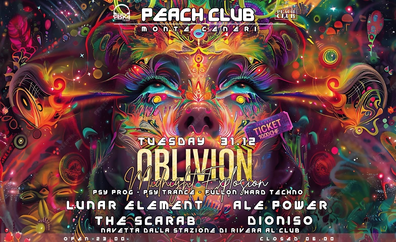 OBLIVION – MIDNIGHT EXPLOSION 31.12 .2025 Peach Club, Via Monte Ceneri 3, 6804 Monteceneri Tickets