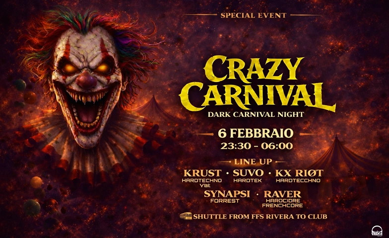 Torna Crazy Carnival, il Carnevale Pazzo che anticipa l’apertura ufficiale dei festeggiamenti con una notte senza regole, tra maschere, oscurità e musica estrema.