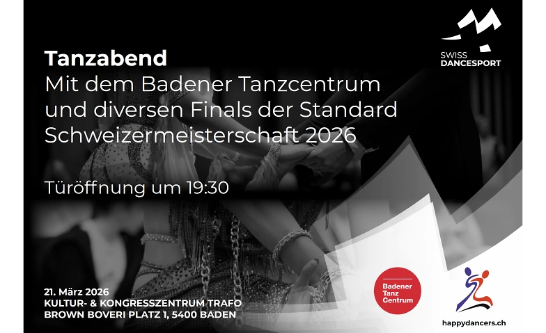Im Rahmen des 20. Trafocups gibt es einen Tanzabend mit Klassischem Paartanz Standard/Latein in Zusammenarbeit mit dem Badener Tanzcentrum.