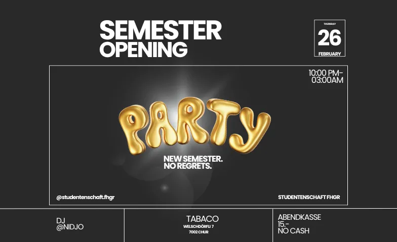 Semester Opening Party FS26 Tabaco, Welschdörfli 2, 7000 Chur Tickets