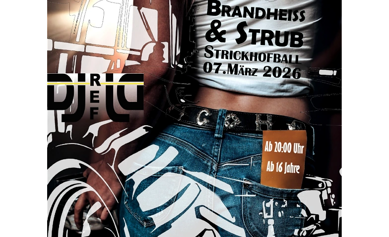 Strickhofball Brandheiss und Strub - endlich steigt sie wieder, die traditionsreiche Party an der landwirtschaftlichen Berufsschule Strickhof in Lindau! Für Stimmung sorgt dieses Jahr DJ Ref JD, die reichhaltig ausgestattete Bar beugt Dehydrierung vor, und in der gemütlichen Kafi-Stube kann man sich bei stimmiger Musik ums leibliche Wohl kümmern.
