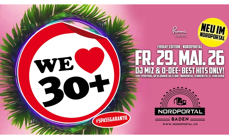 WE LOVE 30+ - Die legendäre ü30 Party als Friday Edition NEU im Nordportal Baden.