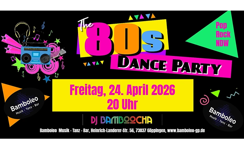 ๐—ง๐—ต๐—ฒ 80'๐˜€ ๐——๐—ฎ๐—ป๐—ฐ๐—ฒ ๐—ฃ๐—ฎ๐—ฟ๐˜๐˜† Bamboleo Göppingen, Heinrich-Landerer-Straße 56, 73037 Göppingen Tickets