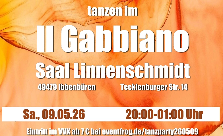 Am Sa., 09.05.2026, 20:00 Uhr, steigt wieder die foxmania Tanzparty für Singles und Paare im Saal Linnenschmidt des Il Gabbiano in Ibbenbüren, OT Laggenbeck.