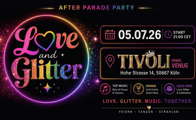 LOVE & GLITTER - Die CSD Köln Afterparty Tivoli ehem. Venue, Hohe Straße 14, 51149 Köln Tickets