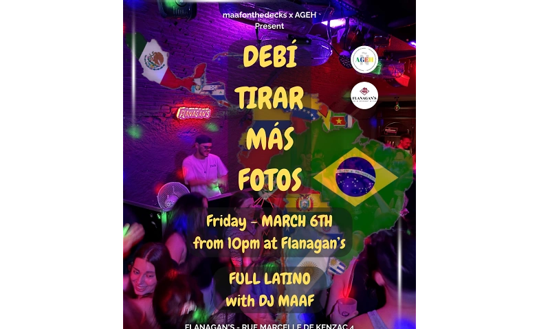 This Friday, March 6th, in collaboration with AGEH, we’re bringing the Latin American heat to Flanagan’s starting at 22:30 🔥