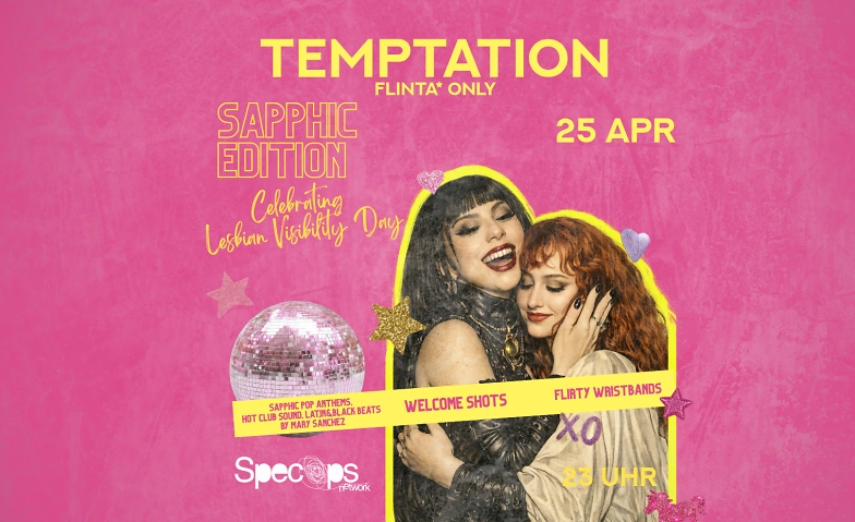 Am 25. April feiern wir mit euch im SpecOps Münster eine ganz besondere TEMPTATION-Nacht: unsere Sapphic Edition - FLINTA* only - und damit direkt hinein in den Lesbian Visibility Day. 🌈✨