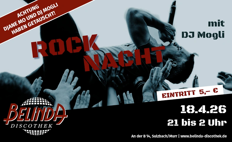 Rocknacht mit DJ Mogli Belinda Discothek, Backnanger Straße 78, 71560 Sulzbach an der Murr Tickets