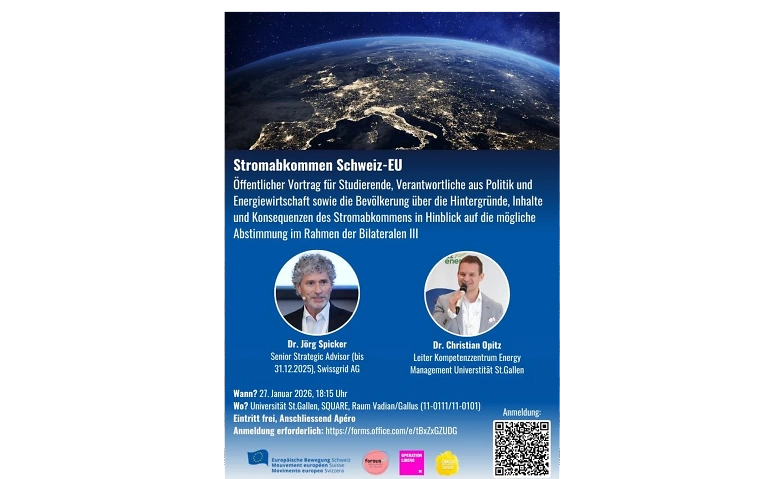 Stromabkommen Schweiz-EU - Öffentlicher Vortrag SQUARE an der Universität St.Gallen (Gebäude 11), Guisanstrasse 20, 9010 St. Gallen Tickets