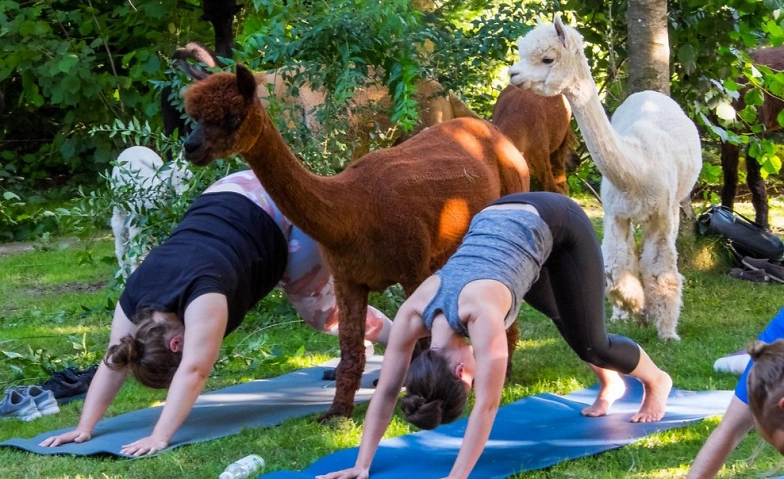 Die Yoga-Sessions auf der Alpaka-Weide bieten nicht nur entspannende Übungen, sondern auch eine herzliche Begegnung mit den neugierigen Alpakas. Vor jeder Yogastunde teilen die Besitzer des Alpakahofs ihr Wissen über das Verhalten und die Pflege der Tiere. Im Anschluss wird auf der Weide verweilt und es können Fotos für die Erinnerung mit dem Lieblingsalpaka geschossen werden (falls es auch möchte).