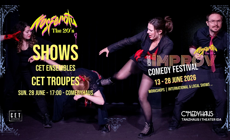 Zurich Improv Festival goes Nosferatu in the 1920s! Coffins meet cocktails, fangs meet flapper dresses, jazz meets the shadows.… and laughter is rising from the crypt. This year’s Zurich Improv Festival embraces Nosferatu, the 20's as its theme: eerie, gothic, and gloriously ridiculous.