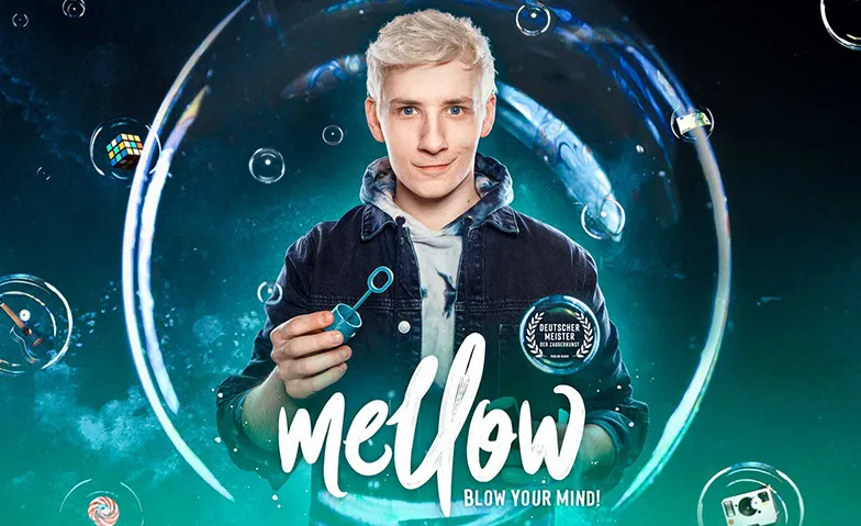 Wenn Du Dir die Augen reibst und Deine Gehirnzellen durchgepustet werden: Dann ist es Mellow! Der sympathische Magier im Kapuzenpulli ist Deutscher Meister der Zauberkunst (Parlor-Magic) und stellt mit kreativen Illusionen und humorvollem Storytelling Deine Welt auf den Kopf!