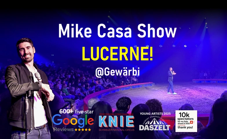 With +200m views and +10m likes in TikTok & IG, as well as 10'000 tickets sold around Switzerland in 2025 alone, Mike Casa is back in Lucerne! In this stand-up comedy show in English, he will present classic jokes and new jokes to you. With another comedian as an opening act, he will offer you 2 hours of pure entertainment. CHECK HIM OUT: @mikecasacomedy