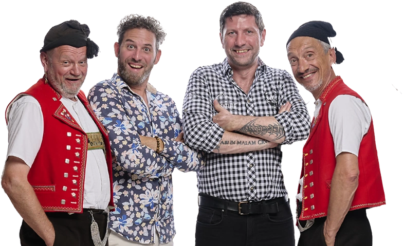 GLATTI CHEIBE, das sind das Comedy Duo Messer & Gabel, der Appenzeller Sepp Manser und der musikalische Komiker Nico Arn, alles bekannte Zeltainer Stammgäste. Zusammen haben diese glatten Cheiben ein vielseitiges Programm zusammengestellt, das direkt auf die Lachmuskeln zielt. Frech, ehrlich, und einfach saumässig witzig – GLATTI CHEIBE bringt genau den Humor auf die Bühne, den die Schweiz liebt. Wer einen Abend lang zurücklehnen, geniessen und herzhaft lachen will, sollte sich dieses Spektakel nicht entgehen lassen! Wir freuen uns irrsinnig auf die Vier!