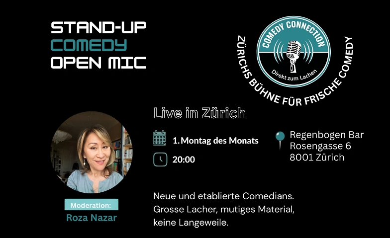 Open Mic Zürich – Stand-up Comedy Night  Comedy Connection Regenbogen Bar, Rosengasse 6, 8001 Zürich Tickets