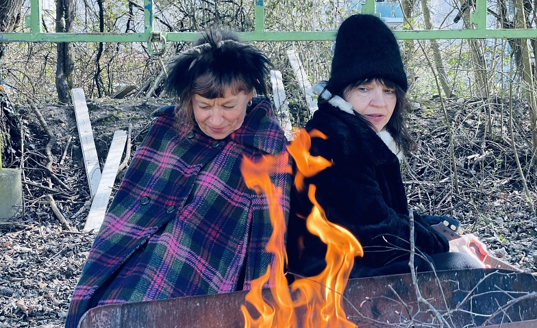 Zwei ältere Frauen haben uns eingeladen. Sie erzählen Geschichten, kochen, musizieren – und sie sind wachsam, scheinen stets auf der Hut. Wovor verbergen sie sich? Ihr einziges Buch haben sie versteckt, als wär’s ein Schatz. Sie horten ihre Nahrungsmittel, portionieren sie, als müssten sie noch lange überleben. Ihre Kleidung schichten sie, als müssten sie sonst bald erfrieren. Und ihre Instrumente pflegen und spielen sie, als wären es die allerletzten Töne.
