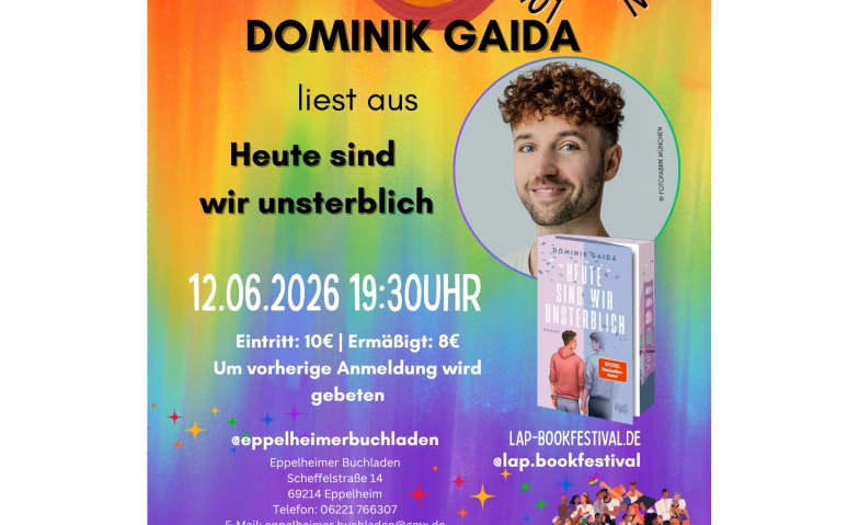 Im letzten Jahr hatten wir bereits eine wunderschöne Veranstaltung mit Dominik Gaida im @eppelheimerbuchladen. Also wiederholen wir das am 12.Juni.2026 um 19:30Uhr. Dominik hat "Heute sind wir unsterblich" im Gepäck.