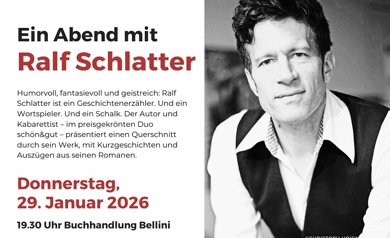 Ein Abend mit Ralf Schlatter Buchhandlung Bellini, Goethestrasse 5, 8712 Stäfa Tickets