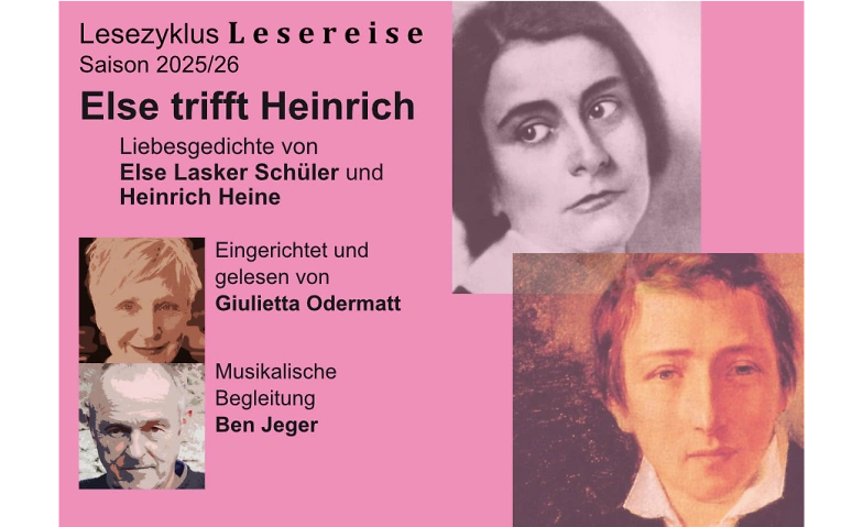 Else trifft Heinrich ist ein musikalisch-lyrischer Abend, ein Rendezvous durch Zeit und Raum hindurch, der eine grosse deutsche Lyrikerin mit einem der grössten deutschen Schriftsteller vereint. Eine Art Flirt aus Klängen, Worten, Sprachbildern, verfasst in zwei verschiedenen Jahrhunderten. Was Else Lasker Schüler und Heinrich Heine verbindet, ist die jüdische Abstammung, also Teil einer zumeist misstrauisch bis feindselig betrachteten Minderheit zu sein, die Erfahrung des Exils und die Fähigkeit, das Glück und die Schmerzen von Leidenschaft und Liebe in mitreissenden Versen zu beschwören.
