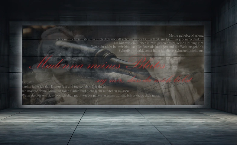 In der szenischen Lesung „Madonna meines Blutes – sag mir, dass du mich liebst“ lassen Sonja Schwarz, Ulrike Pepmöller und Hardo Heyl diese außergewöhnliche Korrespondenz lebendig werden. Aus rund 160 erhaltenen Briefen wurde eine Auswahl getroffen, die in etwa einer Stunde die vielen Facetten dieser Beziehung sichtbar macht: Leidenschaft, Affäre, Freundschaft, Abhängigkeit und tiefe Vertrautheit.