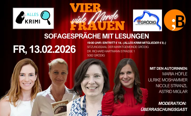 Vier Frauen - viele Morde: Sofagespräche mit Lesungen Marktgemeinde Grödig, Doktor-Richard-Hartmann-Straße 1, 5082 Grödig Tickets