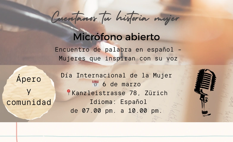 Mujer: De Musa a Poesía Viva Micrófono abierto-poesía leída Kanzleistrasse 78, Kanzleistrasse 78, 8004 Zürich Tickets