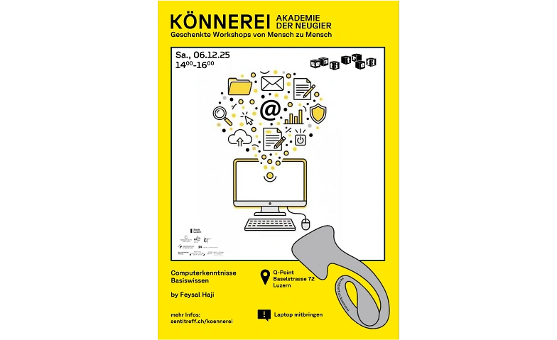 Im Workshop lernen wir die Grundlagen im Umgang mit dem Computer: wie man Dateien speichert und organisiert, im Internet recherchiert, E-Mail schreibt und erste Schritte in Word, Excel und Powerpoint macht. Ziel ist, Sicherheit im Alltag mit dem Computer zu gewinnen.