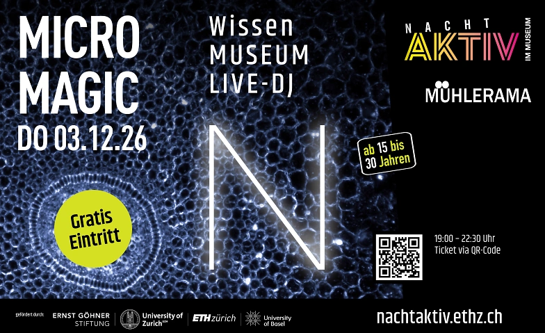 Am Donnerstag, 3. Dezember 2026, findet im Museum Mühlerama die nächste unkonventionelle Museumsnacht statt. „Micro Magic“ heisst unser Motto. Eingeladen wird zum Ausprobieren, Staunen und Geniessen.