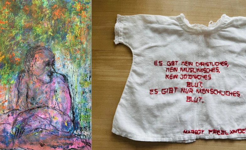 In ihren bestickten Hemden verbindet sich das Politische mit dem Menschlichen. Die zarten Stoffe tragen Worte, die von Mut, Mitgefühl und Verantwortung sprechen. Sie laden dazu ein, still zu werden, zu lesen, zu fühlen.