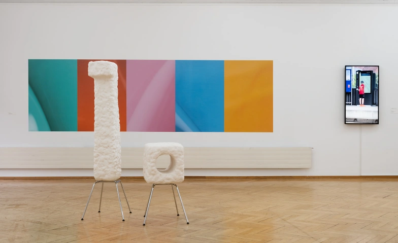 Credits: Abb.: Ausstellungsimpression Kunstmuseum Olten 2025, mit Werken von Pawel Ferus, Andreas Jäggi und Andreas Hofer, Foto: Rachel Bühlmann