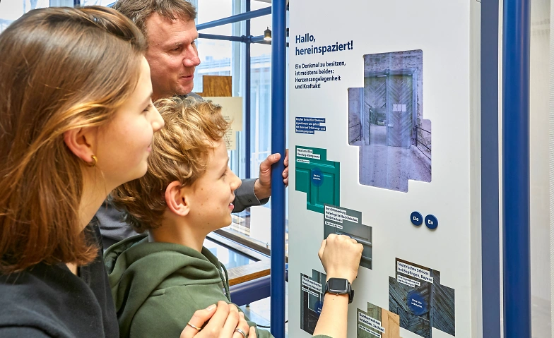 Diese einzigartige, hochmoderne und multimediale Ausstellung wirft einen ungewöhnlichen Blick auf das kontroverse Thema Denkmalschutz und gibt Antworten auf viele Fragen, irrtümliche Annahmen oder gängige Vorurteile, die so noch nirgendwo beantwortet worden sind. In sechs interaktiven Stationen macht die Ausstellung die „Baustelle Denkmal“ lebendig und spannend nachvollziehbar. Wir zeigen Ihnen, wie ein Denkmal eigentlich ein Denkmal wird, geben Einblick in die Gefahren, denen Denkmale ausgesetzt sind, wir besuchen Denkmaleigentümer und Werkstätten von Handwerkern, auch viele lustige und ungewöhnliche Denkmalschutz-Tatsachen und Aktionen zum Selbstentdecken warten auf Sie!