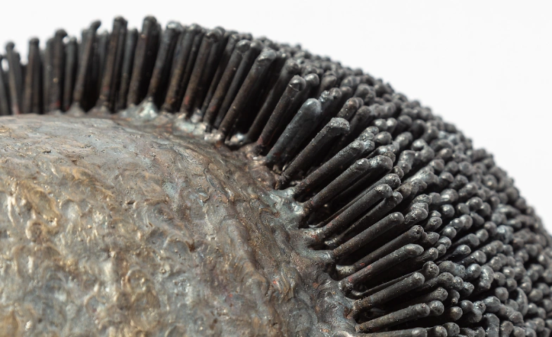 Die Eisenplastiken werden aus einzelnen Stäben geschweißt. Die offene Flamme macht das Eisen flüssig, es wird Tropfen für Tropfen verbunden, strukturiert. Es kühlt ab, wird fest. Die Hitze hinterlässt ihre Spur. Durch das sehr langsame Arbeiten, reift die Plastik. Was werden will hat Raum, Gestalt anzunehmen. Es entstehen Hüllen, Fragmente, Wandarbeiten, die sowohl offen, als auch geschlossen, in sich ruhend, stark und auch fragil sind. Glatt, samtig oder rau, grau oder rostig.