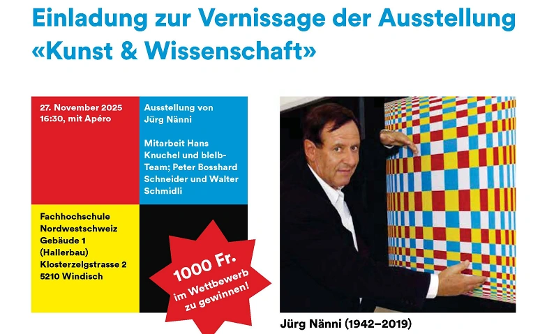 Vernissage der Ausstellung «Kunst & Wissenschaft» Fachhochschule Nordwestschweiz Gebäude 1 (Hallerbau), Klosterzelgstrasse 2, 5210 Windisch Tickets