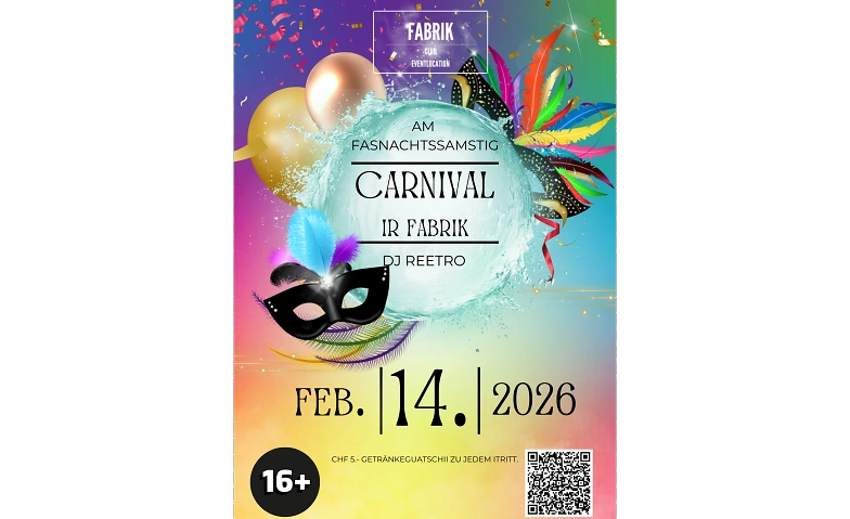 CARNIVAL IR FABRIK AM FASNACHTSSAMSTIG 16+ FABRIK, Seilerbahnweg 7, 7000 Chur Tickets
