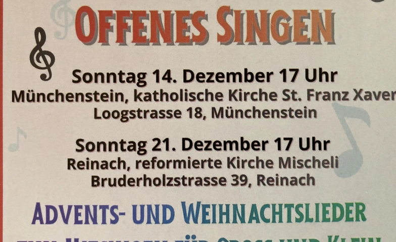 Sonntag, den 14. Dezember 17:00 Uhr, Katholische Kirche Münchenstein