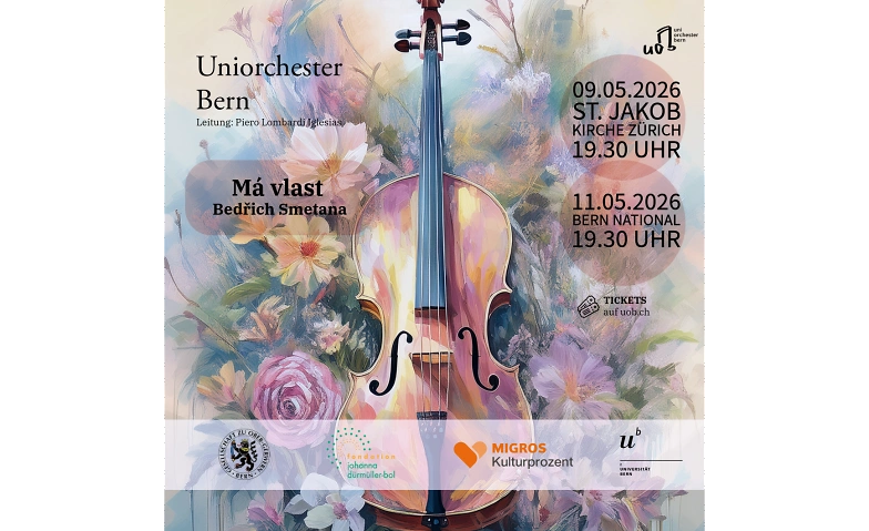 Erleben Sie einen unvergesslichen Konzertabend mit dem Uniorchester Bern unter der Leitung von Piero Lombardi Iglesias. Im Mittelpunkt des Programms steht Bedřich Smetanas Meisterwerk Ma vlast (Mein Vaterland), eines der bedeutendsten Werke der tschechischen Romantik. Besonders die berühmte Komposition „Die Moldau“ entfaltet mit ihren fließenden Melodien und emotionalen Klangfarben eine einzigartige Atmosphäre.