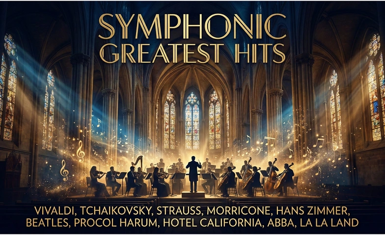 Symphonic Greatest Hits Eine musikalische Reise für alle: Von Klassik-Liebhabern bis zu Fans grosser Soundtracks, Pop-Rock und Melodien, die ganze Generationen geprägt haben. Mit unserem Sinfonieorchester präsentieren wir ein Programm, das Sie sofort wiedererkennen und geniessen werden.