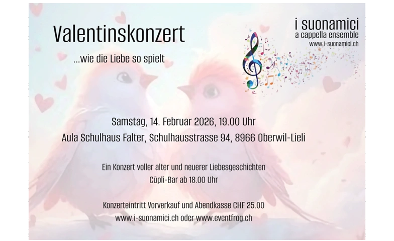 Valentinskonzert ...wie die Liebe so spielt Schulhaus Falter, Schulhausstrasse 94, 8966 Oberwil-Lieli Tickets