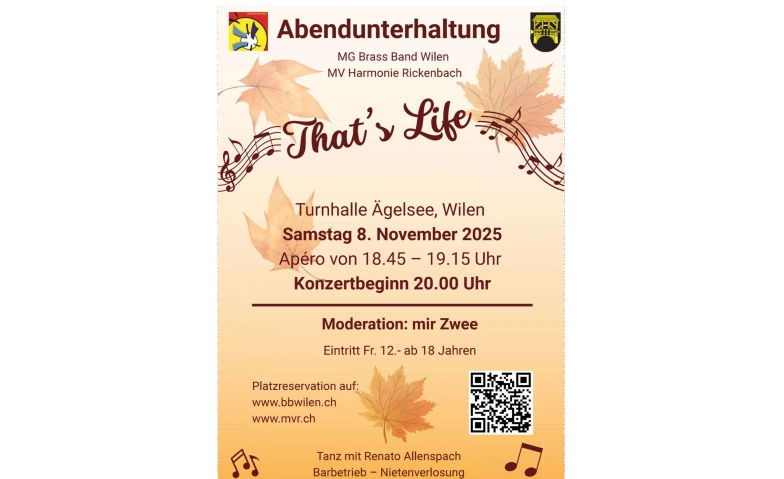 Die Brass Band Wilen und der Musikverein Harmonie Rickenbach laden Sie