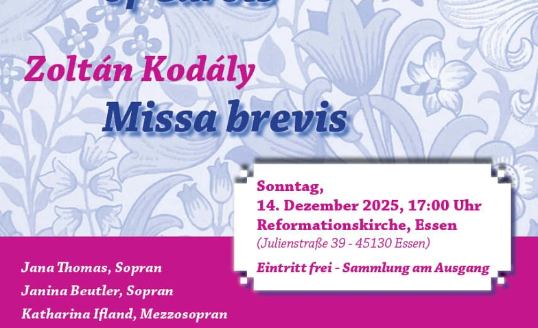 Das Konzert findet statt am Sonntag, 14. Dezember 2025 um 17 Uhr in der Reformationskirche, Julienstraße 39, 45130 Essen. Der Eintritt zum Konzert ist frei, am Ausgang gibt es eine Sammlung.